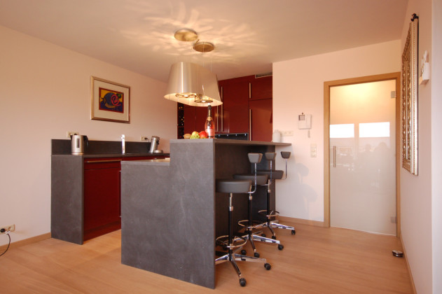 Mit viel Cleverness haben wir die bestehende Wohnung komplett neu gestaltet. Es gelang die Aufteilung in zwei Ebenen, so sind auf der unteren Etage die praktische Küche, das komfortable Wohnzimmer, der Eingangsbereich sowie ein Gästezimmer mit Bad untergebracht, während in der zweiten Ebene ein funktionaler Arbeitsbereich, ein cooler Medienbereich sowie ein Schlafzimmer mit einem Masterbad integriert sind.